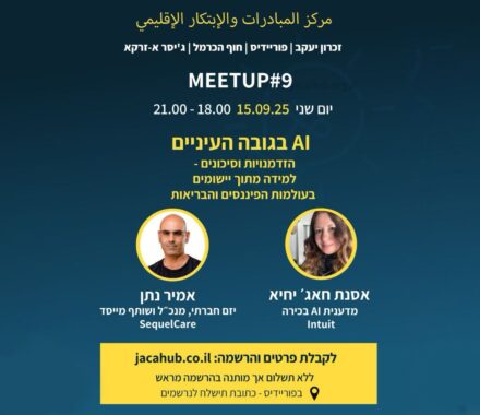 בהנחיית אמנון לבב מנהל החדשות ב SIT. ממשיכים את סדרת ה-MeetUps, עם ד״ר נטלי בלוך ועם ד״ר אינאס סעיד במהלך המפגש נשמע משני האורחים על נסיונם, מיזמיהם וגם על כשלונותיהם, ולאחר מכן תנוהל שיחה, תוך שילוב שאלות מהקהל. כרגיל ב JACAH, תהיה הזדמנות לחברי…